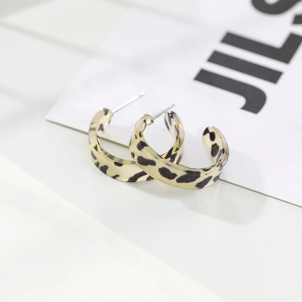 New Korean Statement Earrings for Women Brown Leopard Geometric Hoop Earrings Vintage 2021 Trend Fashion Jewelry Gifts Creative